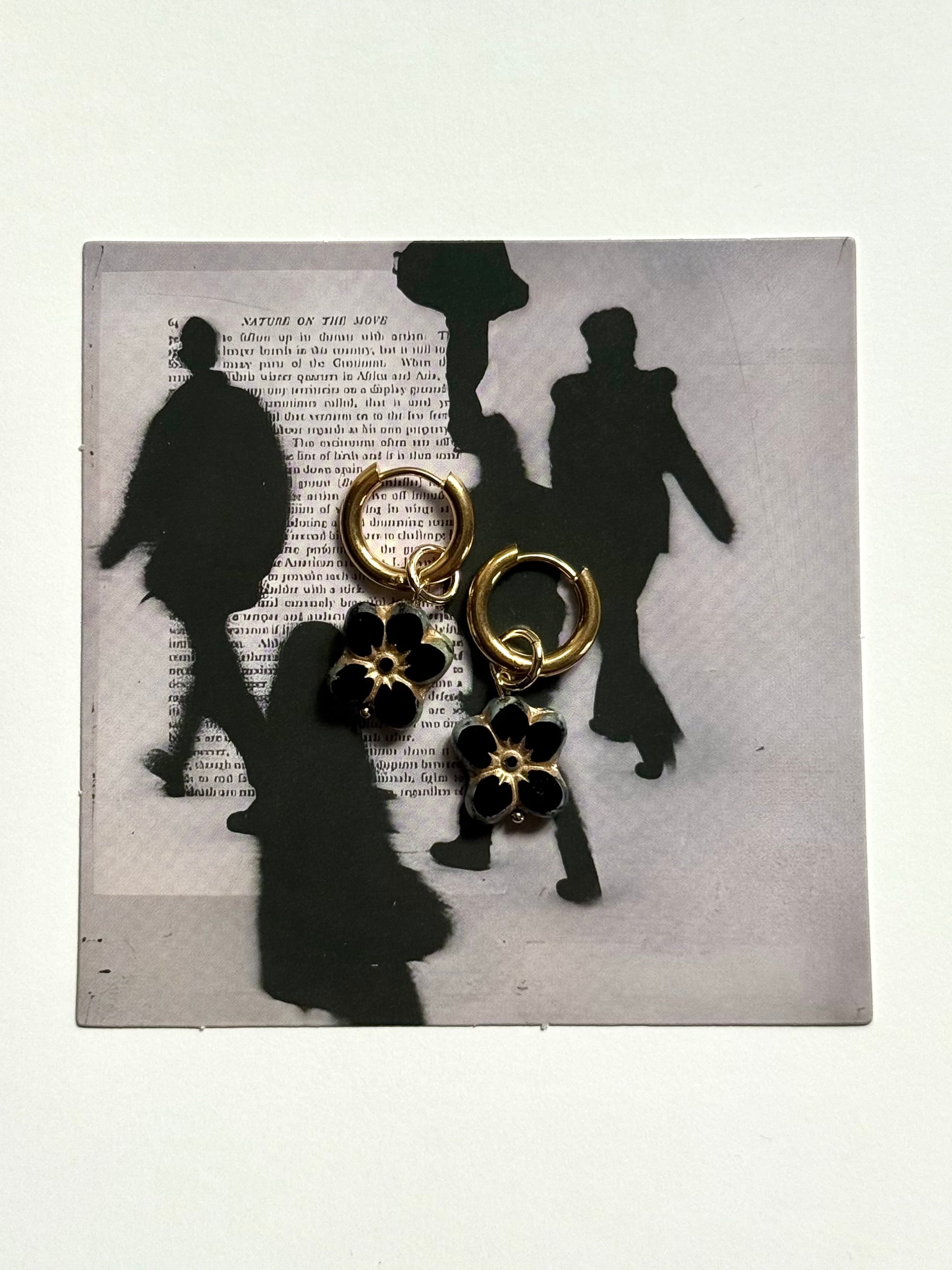 vimtage感のあるフラワービーズをチャームに施したフープピアスとなっております。