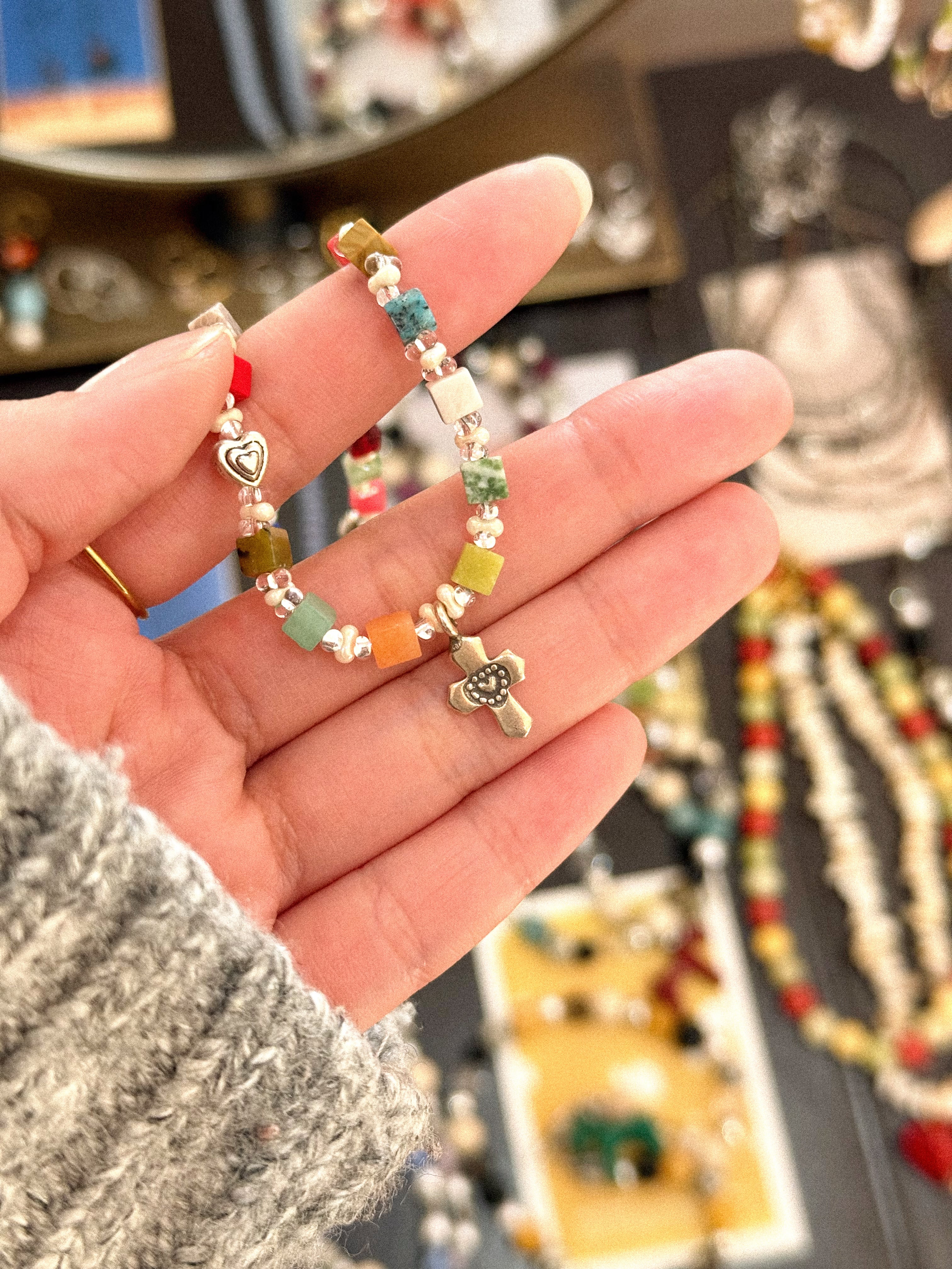スクエアの形をしたちっちゃな天然石がなんとも可愛く美しいアイテムです。