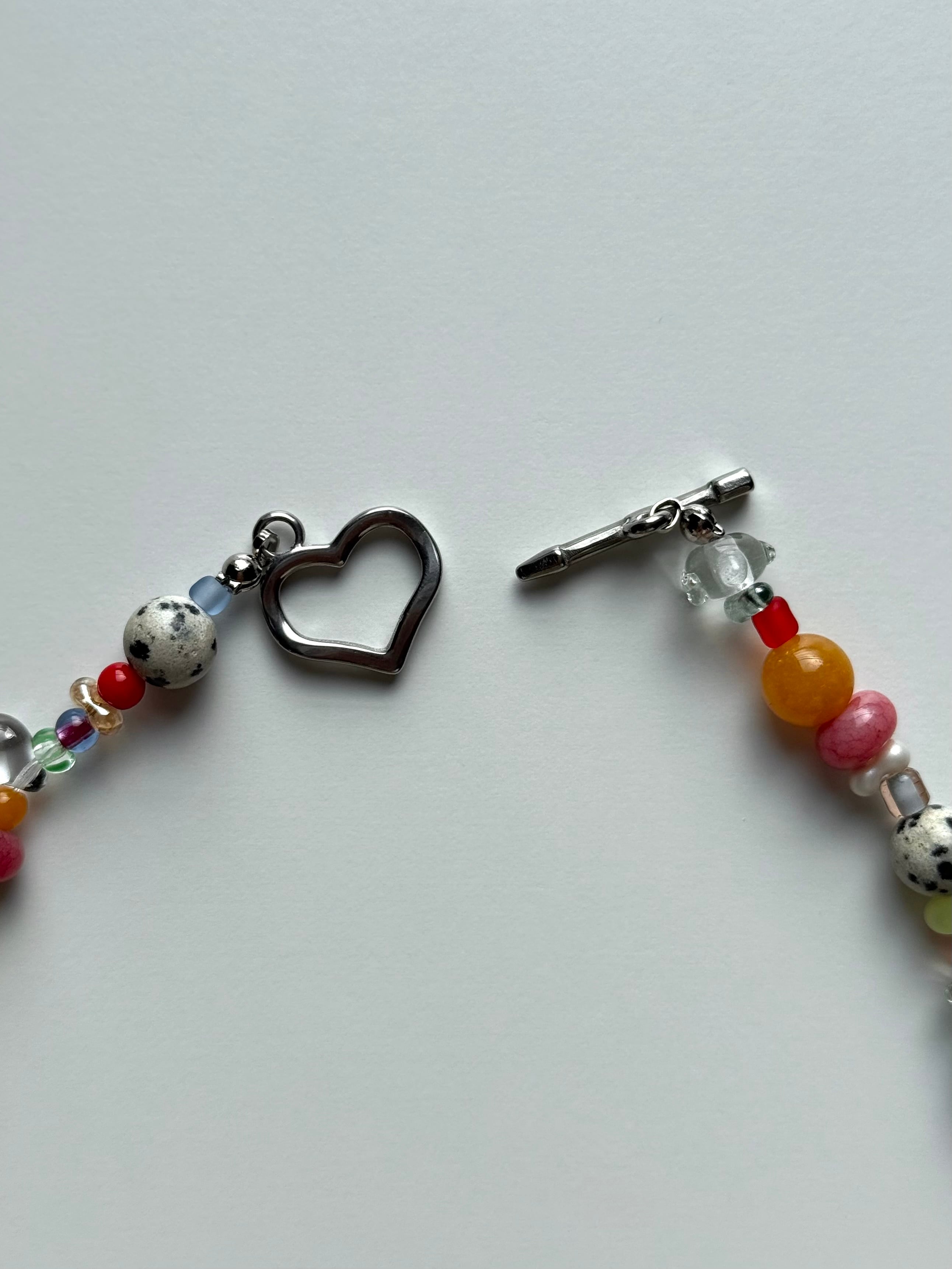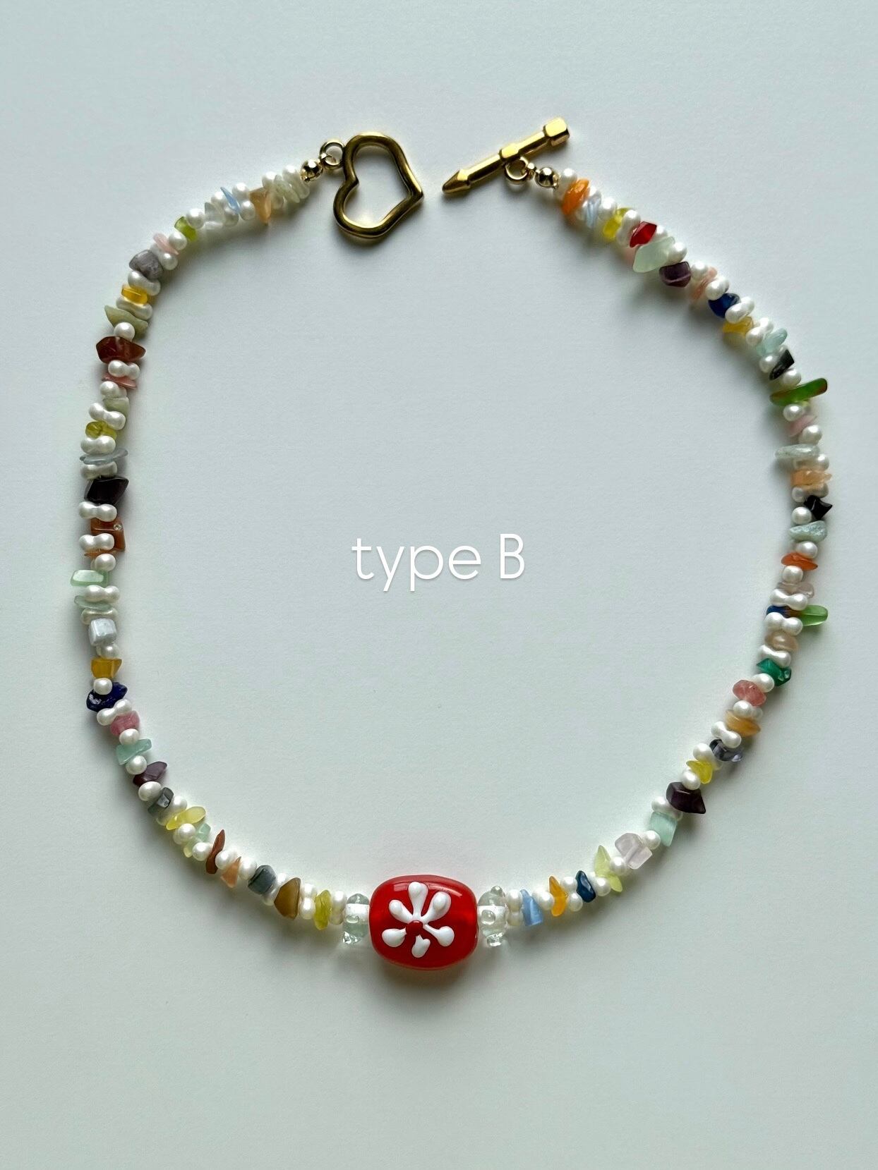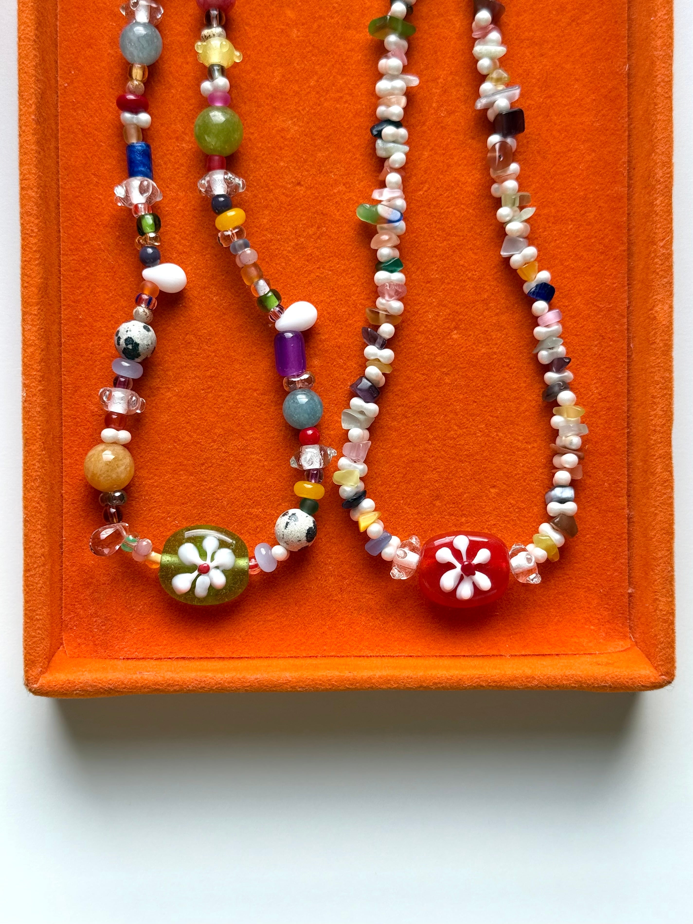 それぞれいろんな表情のビーズを組み合わせたチョーカーとなっております。