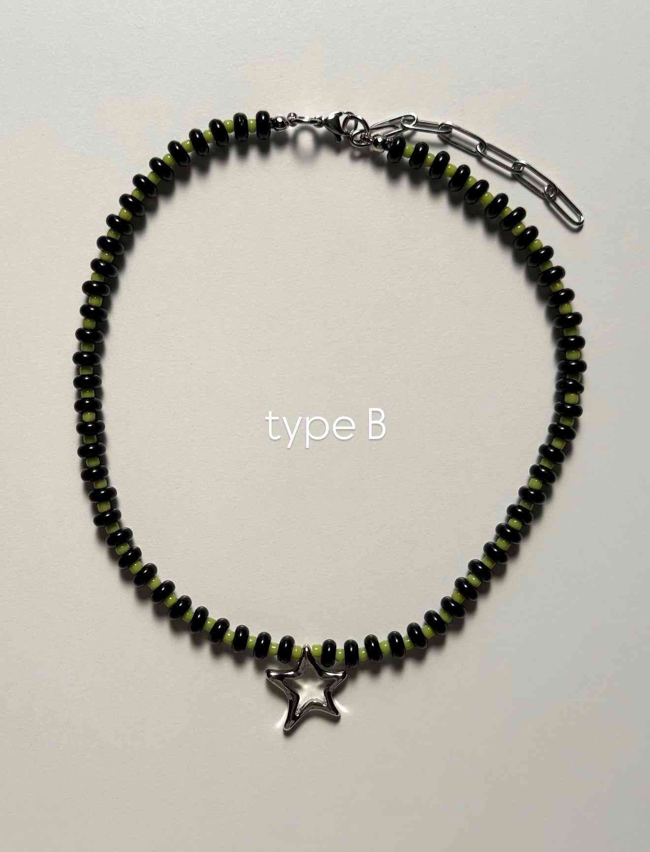 お星様をメインにそれぞれのカラーの天然石を組み合わせたネックレスとなっております。