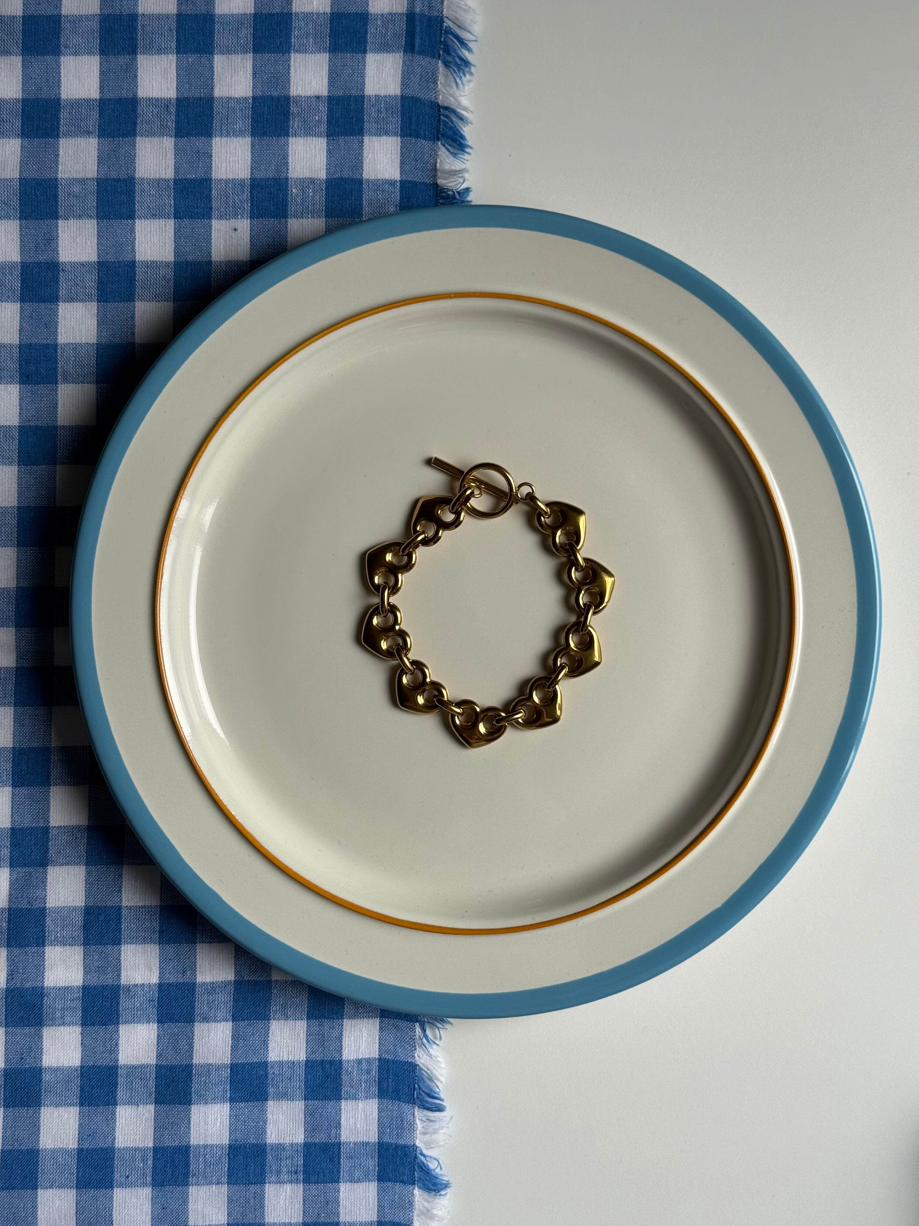 シンプルなハートメインのブレスレットとなっております。