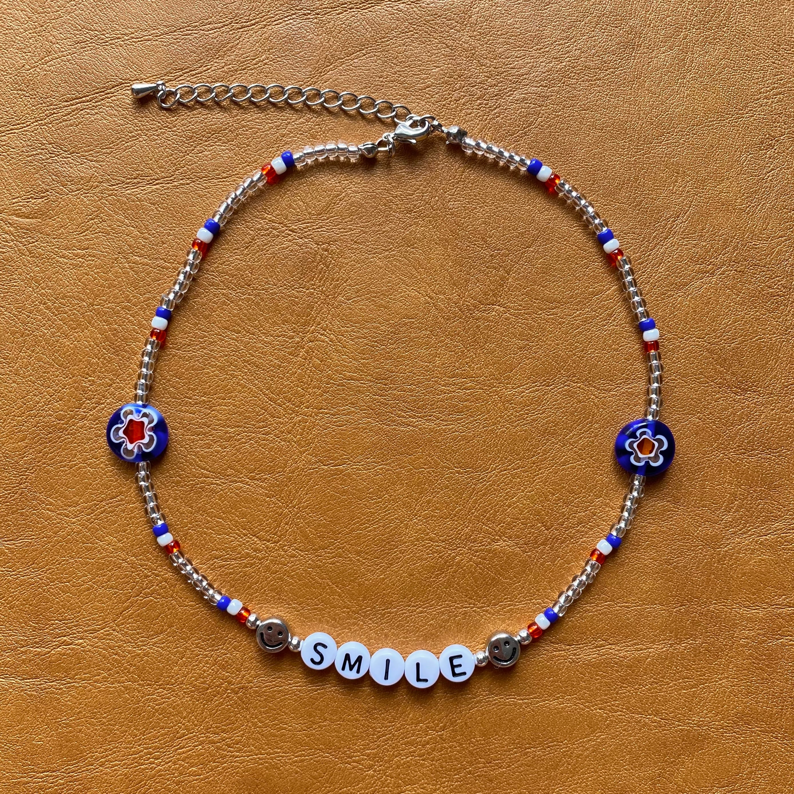 スマイルビーズとアルファベットがポイントなチョーカーとなっています。