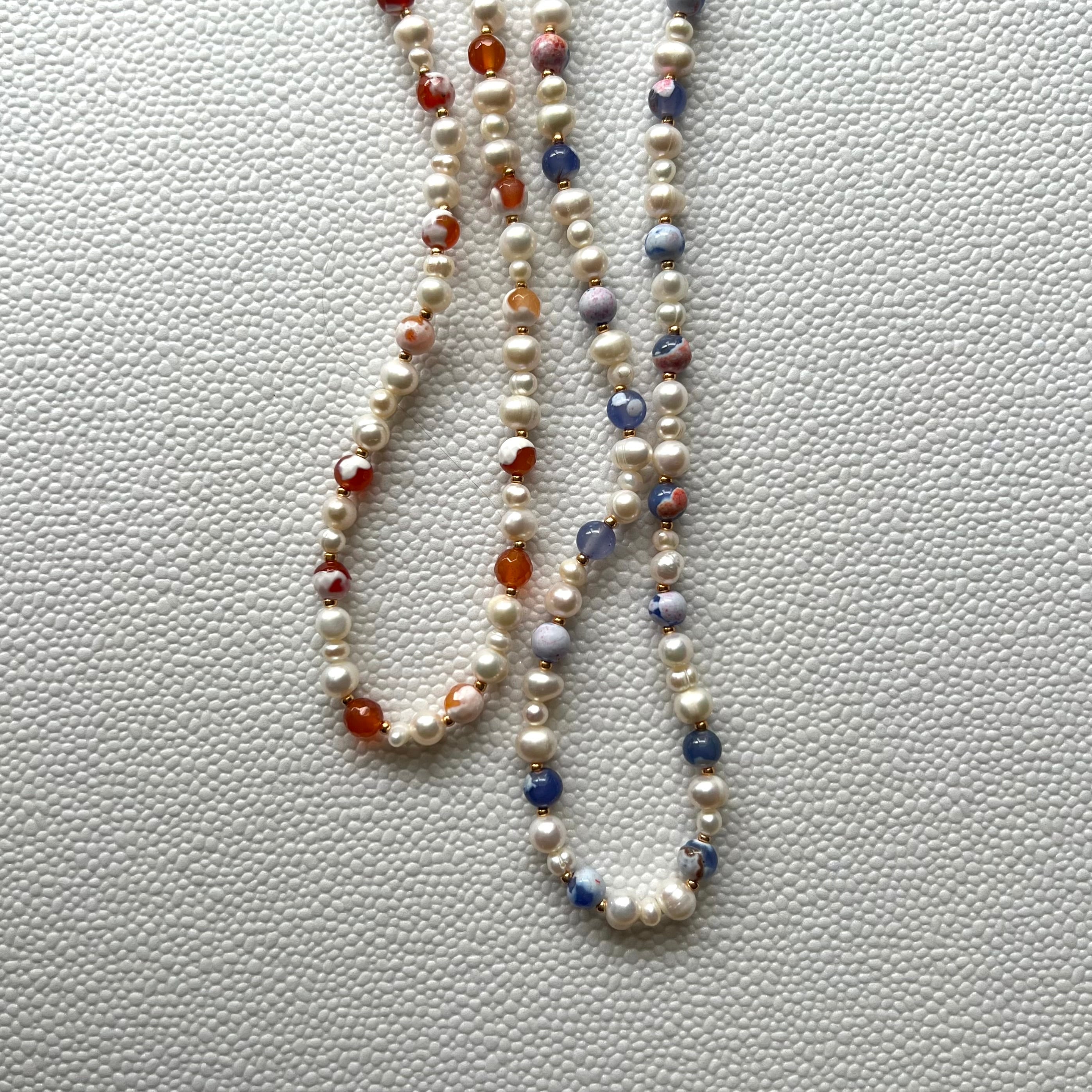 マーブルビーズと淡水パールを組み合わせたチョーカーとなっております。