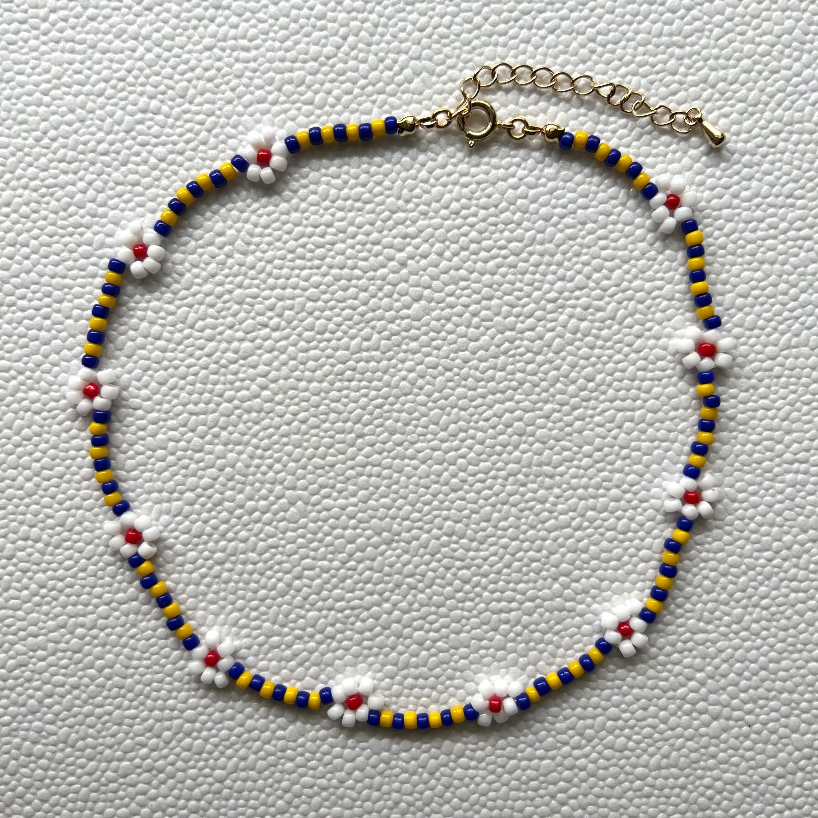 デイジーとボーダーを組み合わせたチョーカーとなっております。