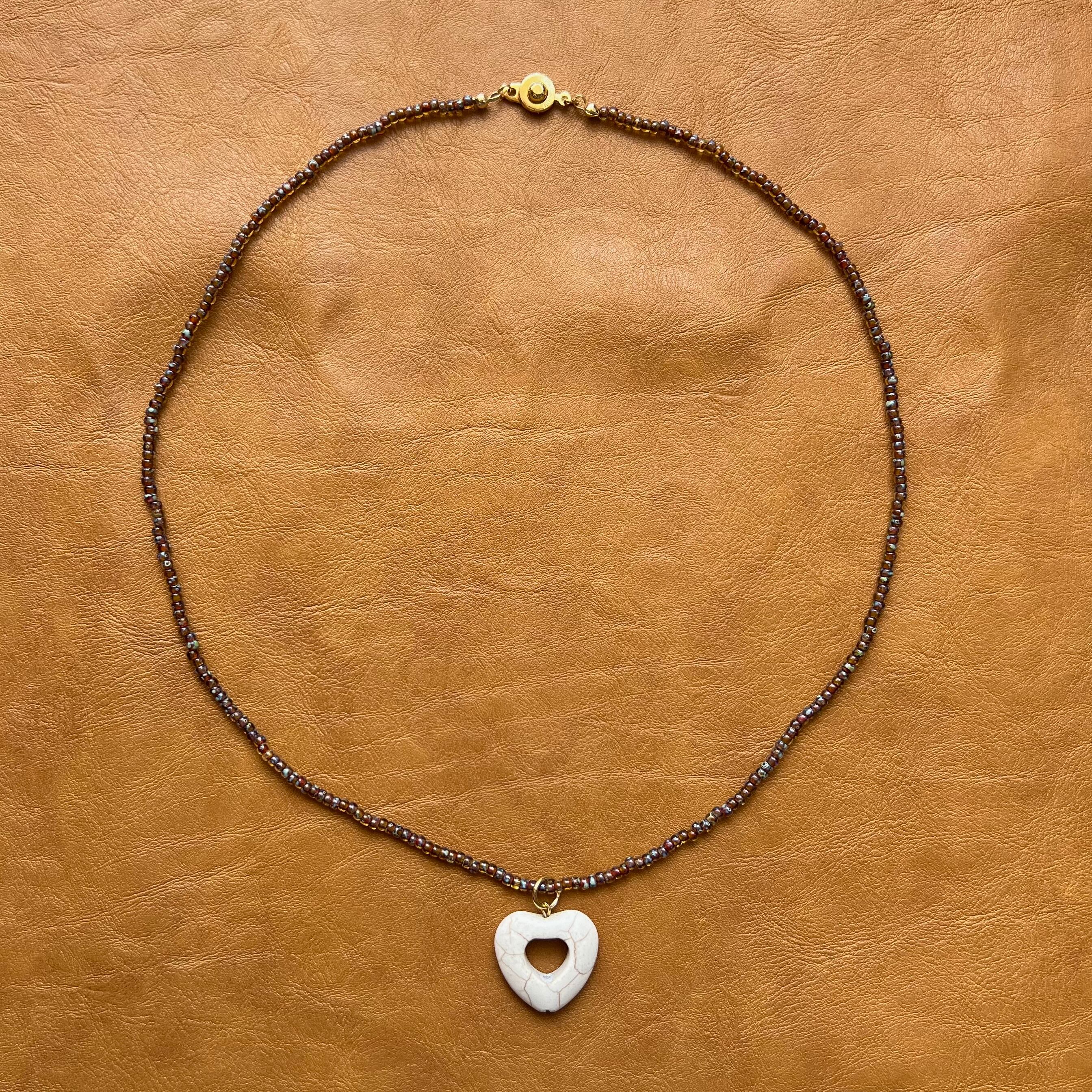 ブラウンの特殊な柄のビーズとの組み合わせが夏にぴったりなアイテムです。