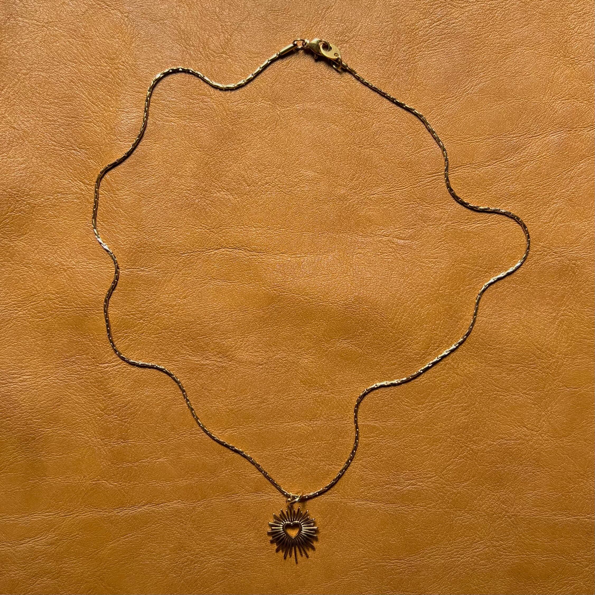太陽とハートが組み合わさったようなチャームのネックレスとなっております。