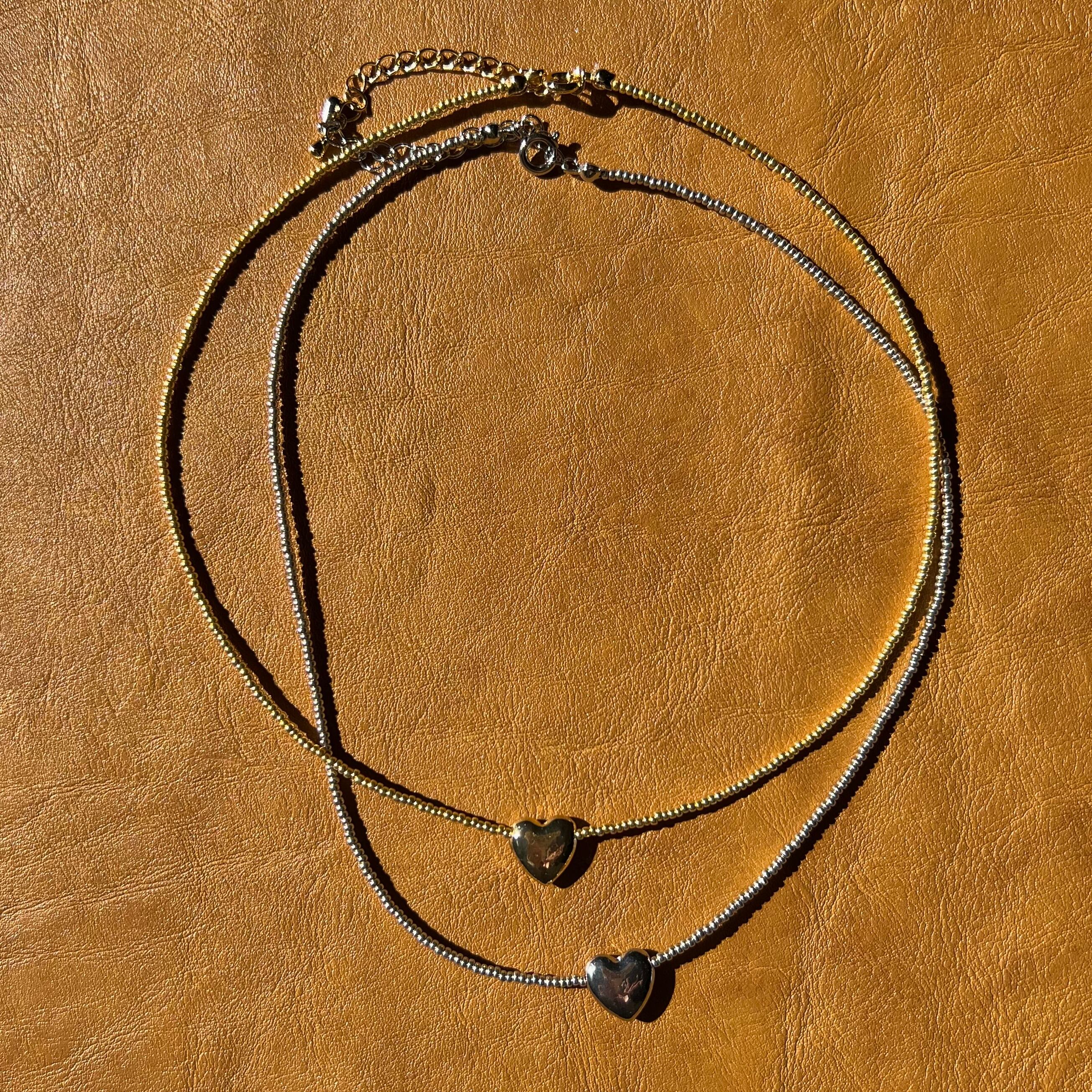 simpleなゴールドとシルバーのハートネックレスとなっております。