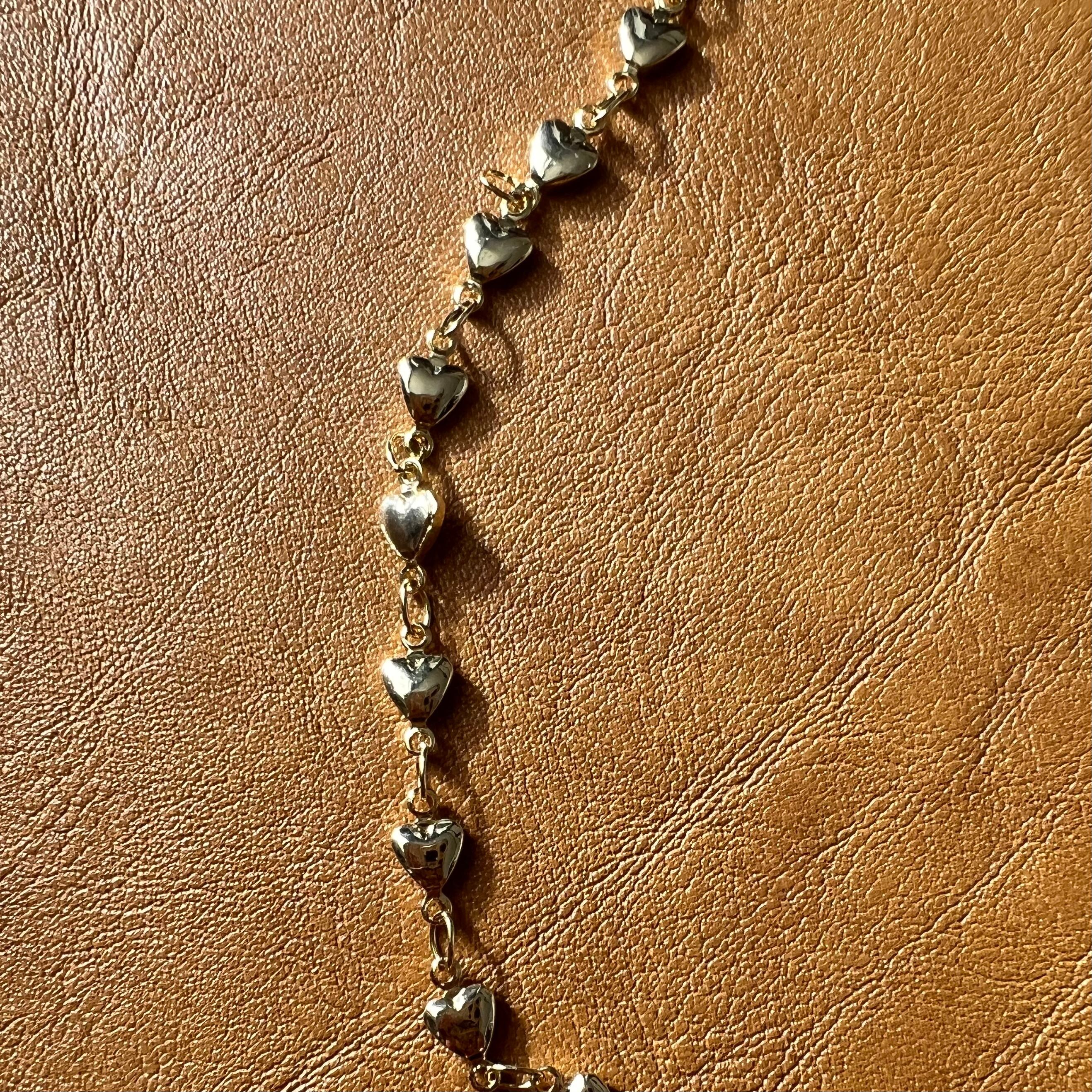 ハートチェーンと小粒な淡水パールを組み合わせ