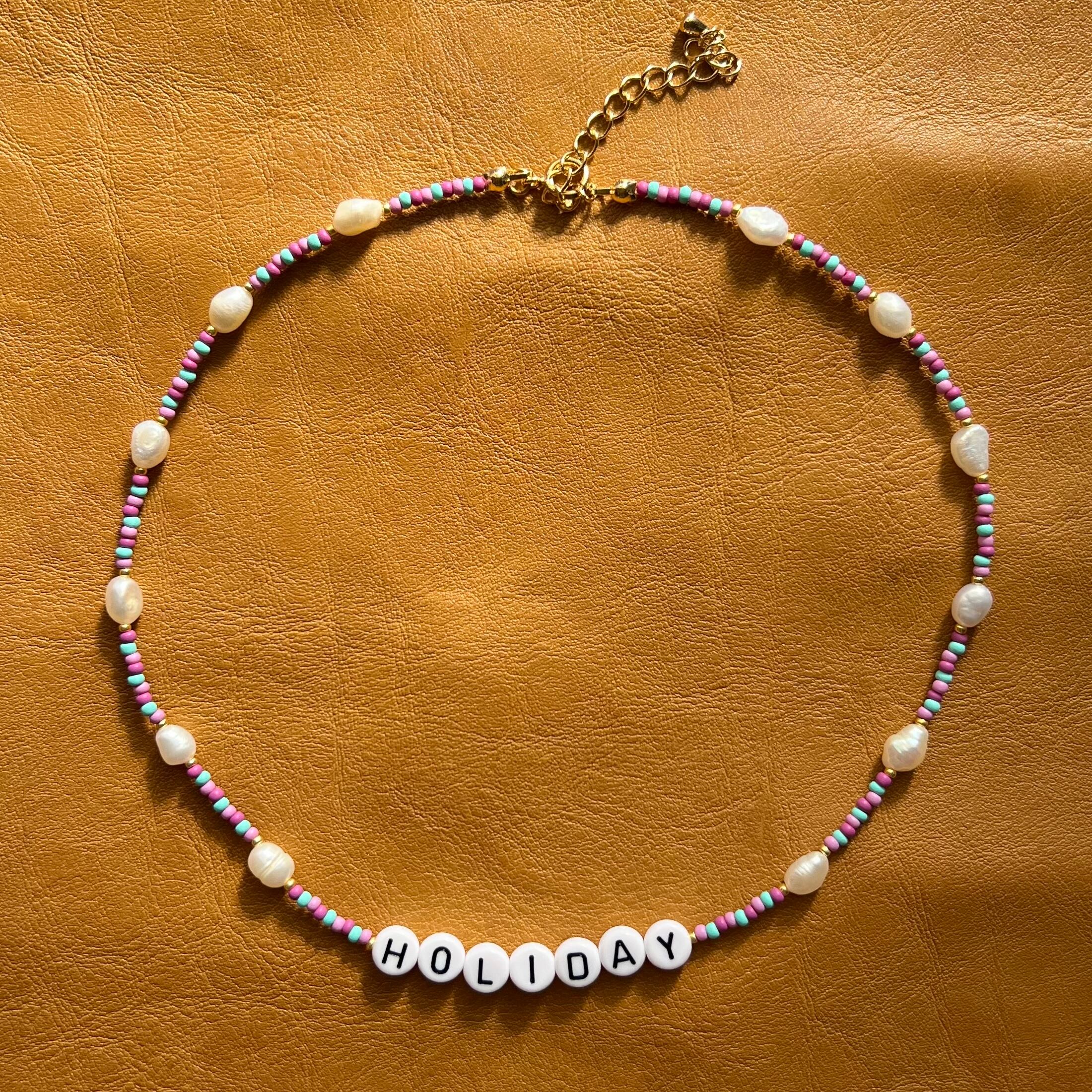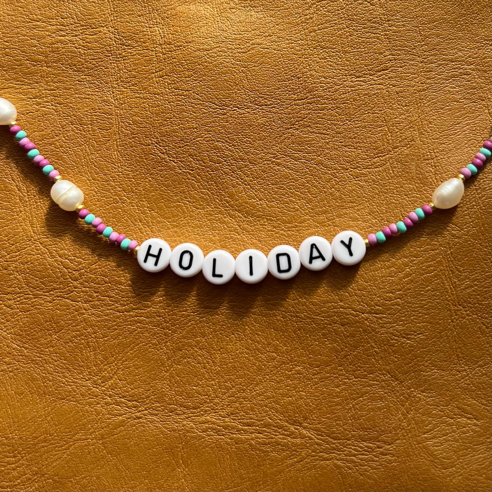 " HAPPY HOLIDAY " をネックレスに仕上げたアイテムとなっております。