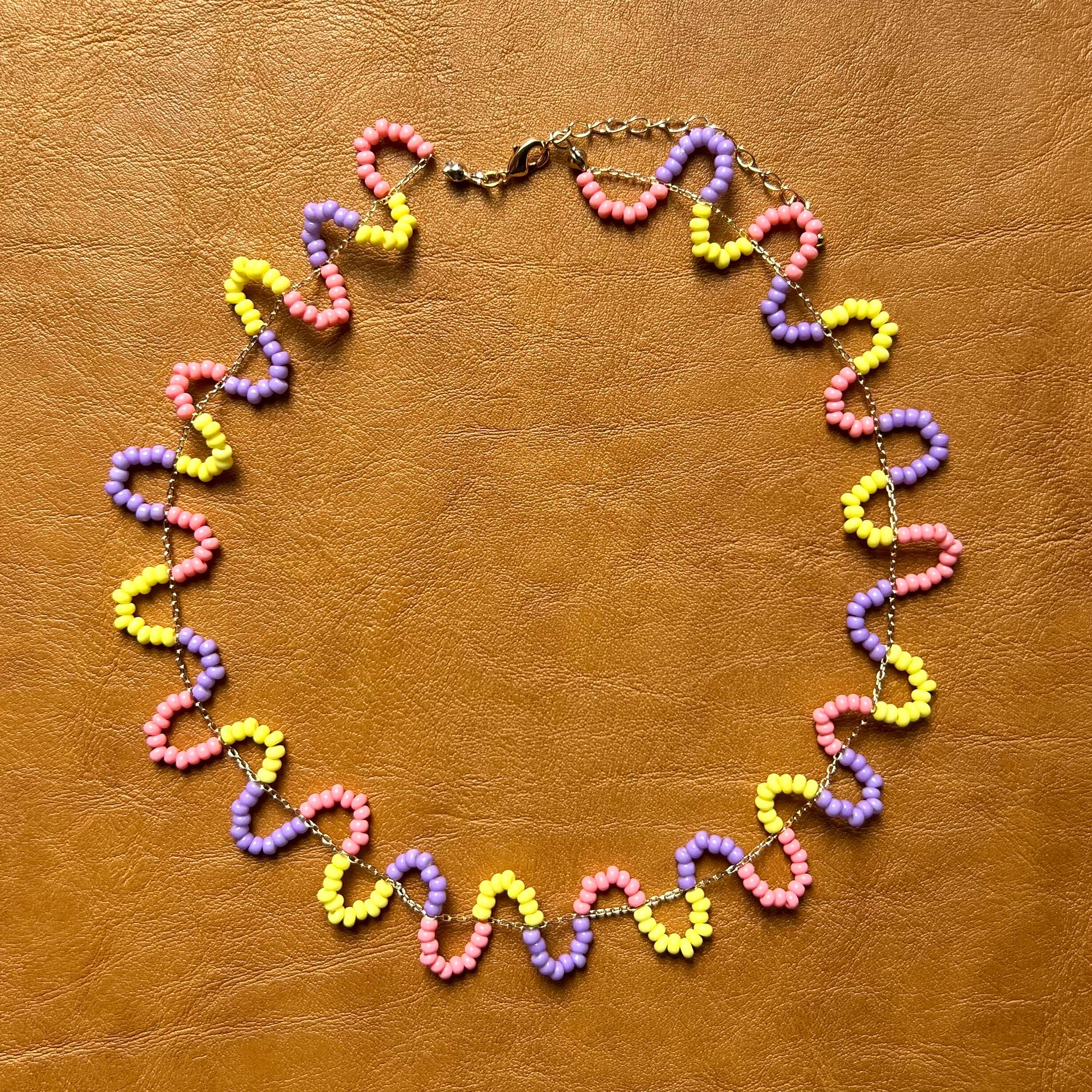 チェーンにビーズをカラフルに彩ったチョーカーとなっております。