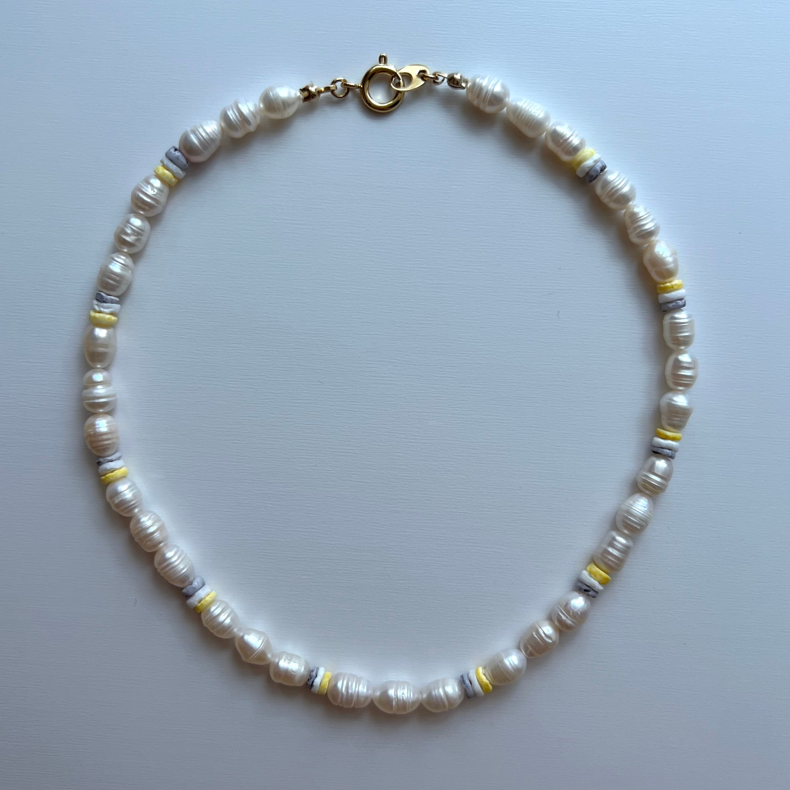 淡水パールにシェルを組み合わせたチョーカーとなっております。