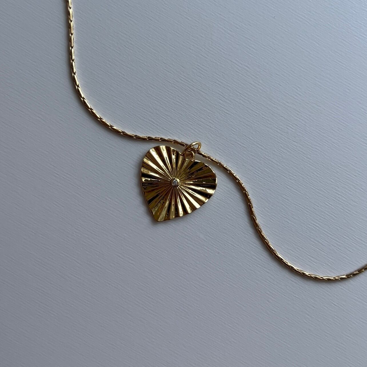 ゴールドハートのチャームがポイントのネックレスとなっております。