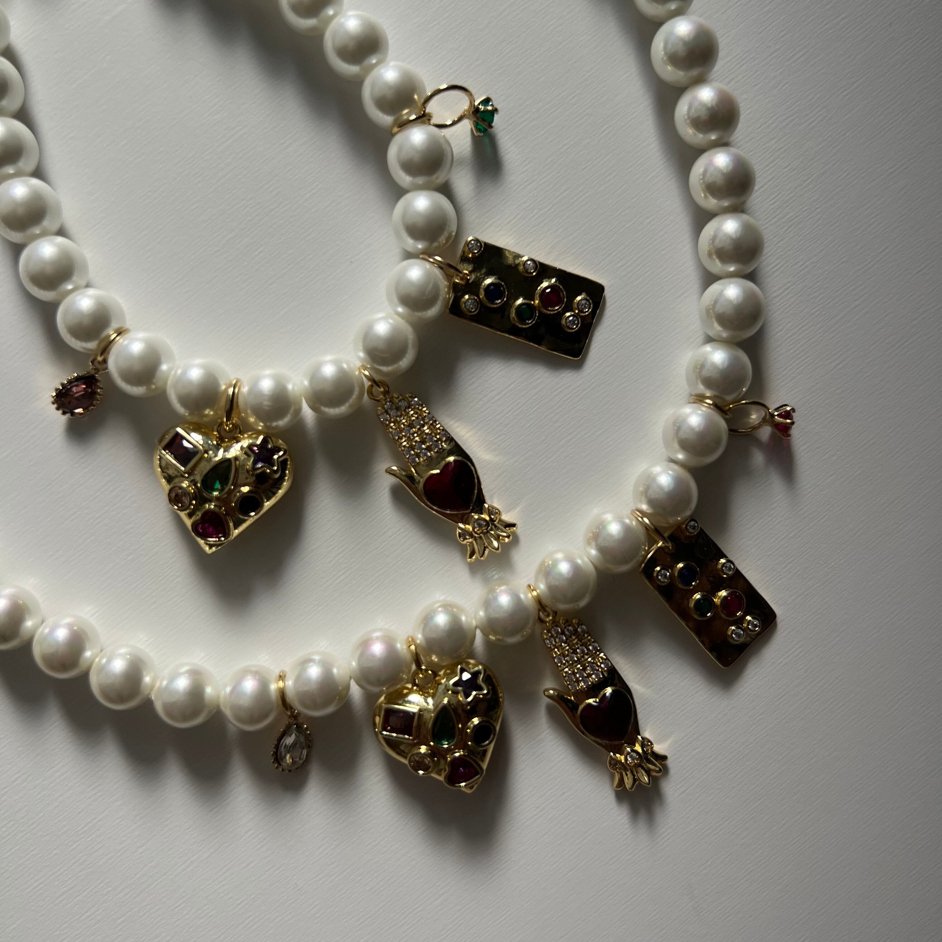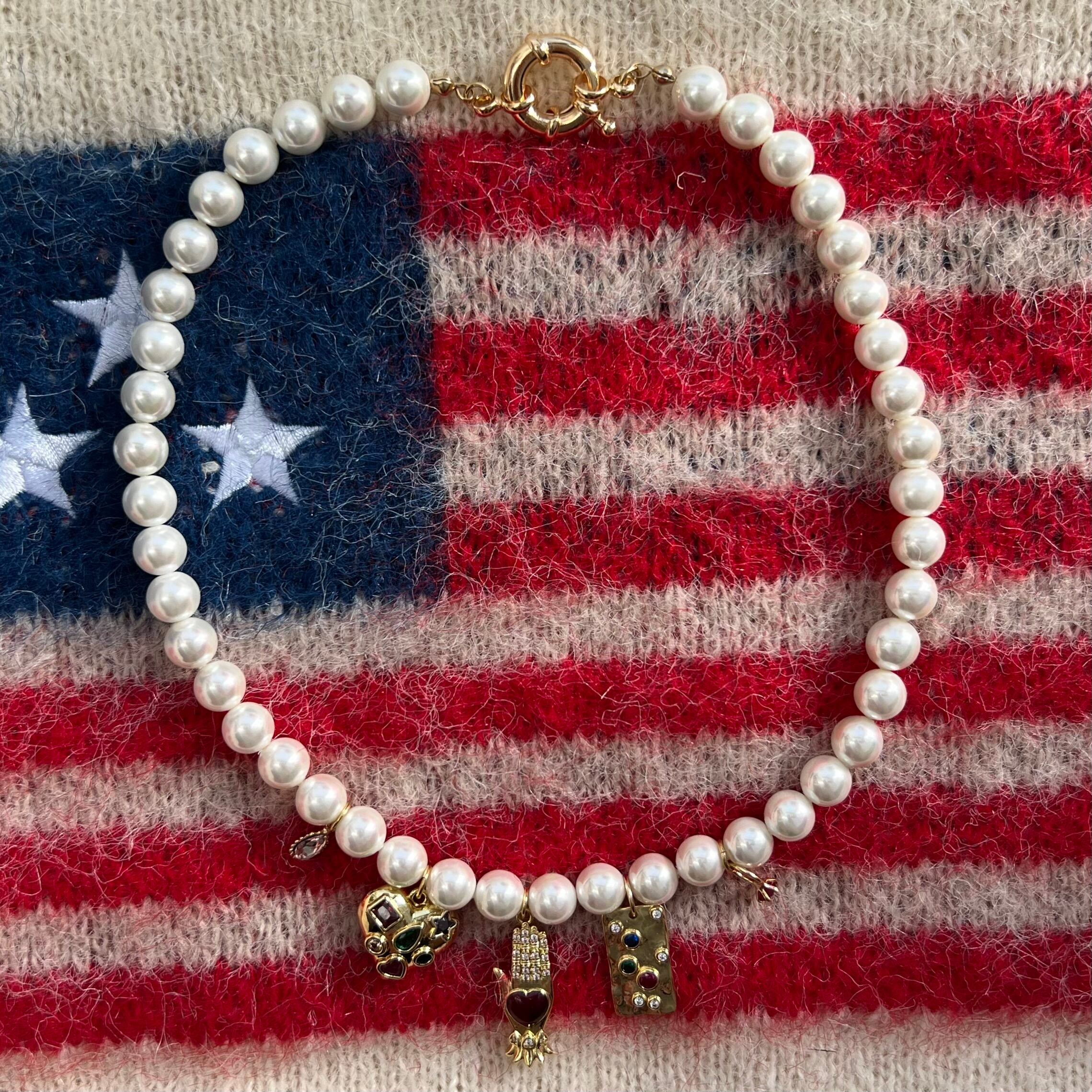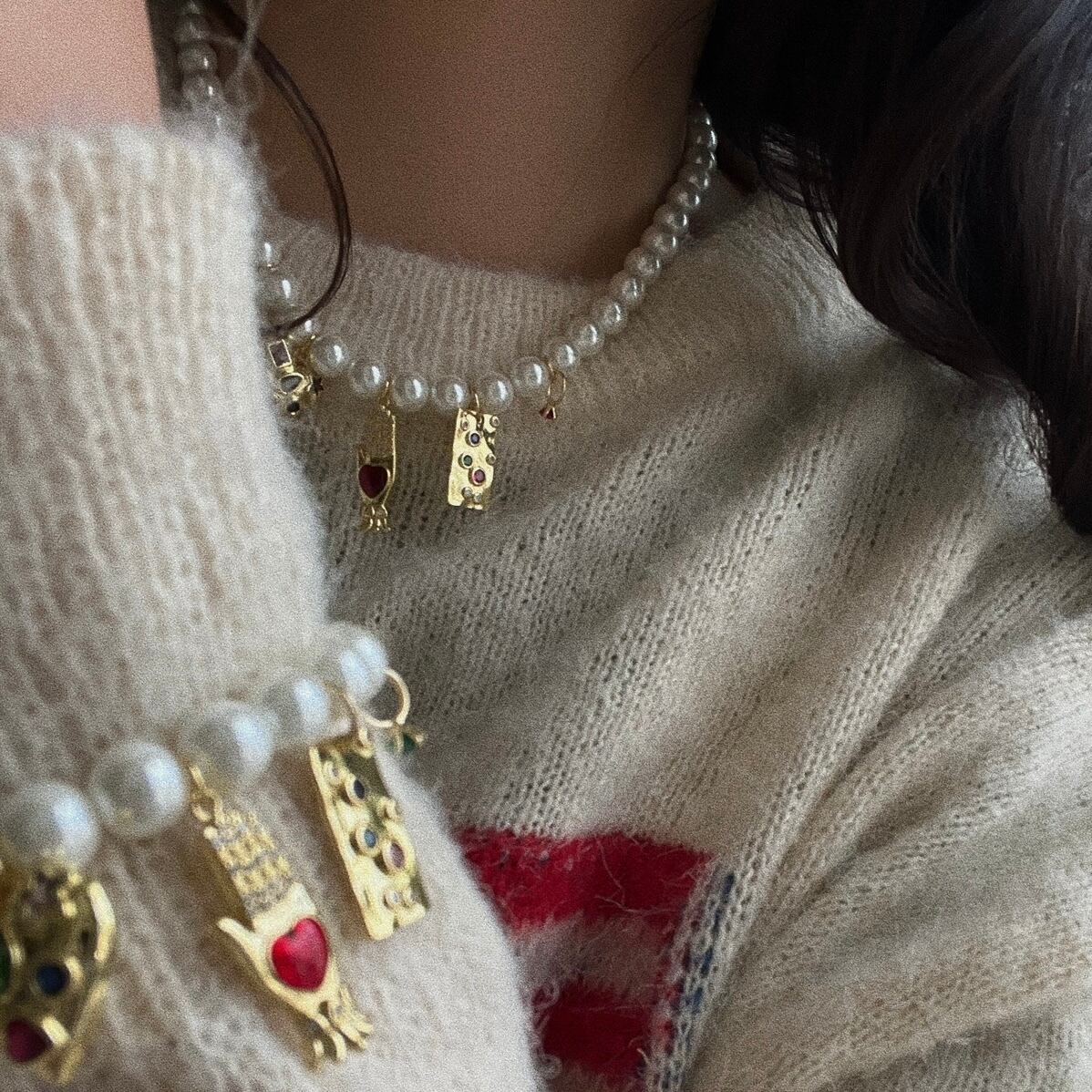 まん丸パールに5種類のチャームを組み合わせたネックレスとなっております。