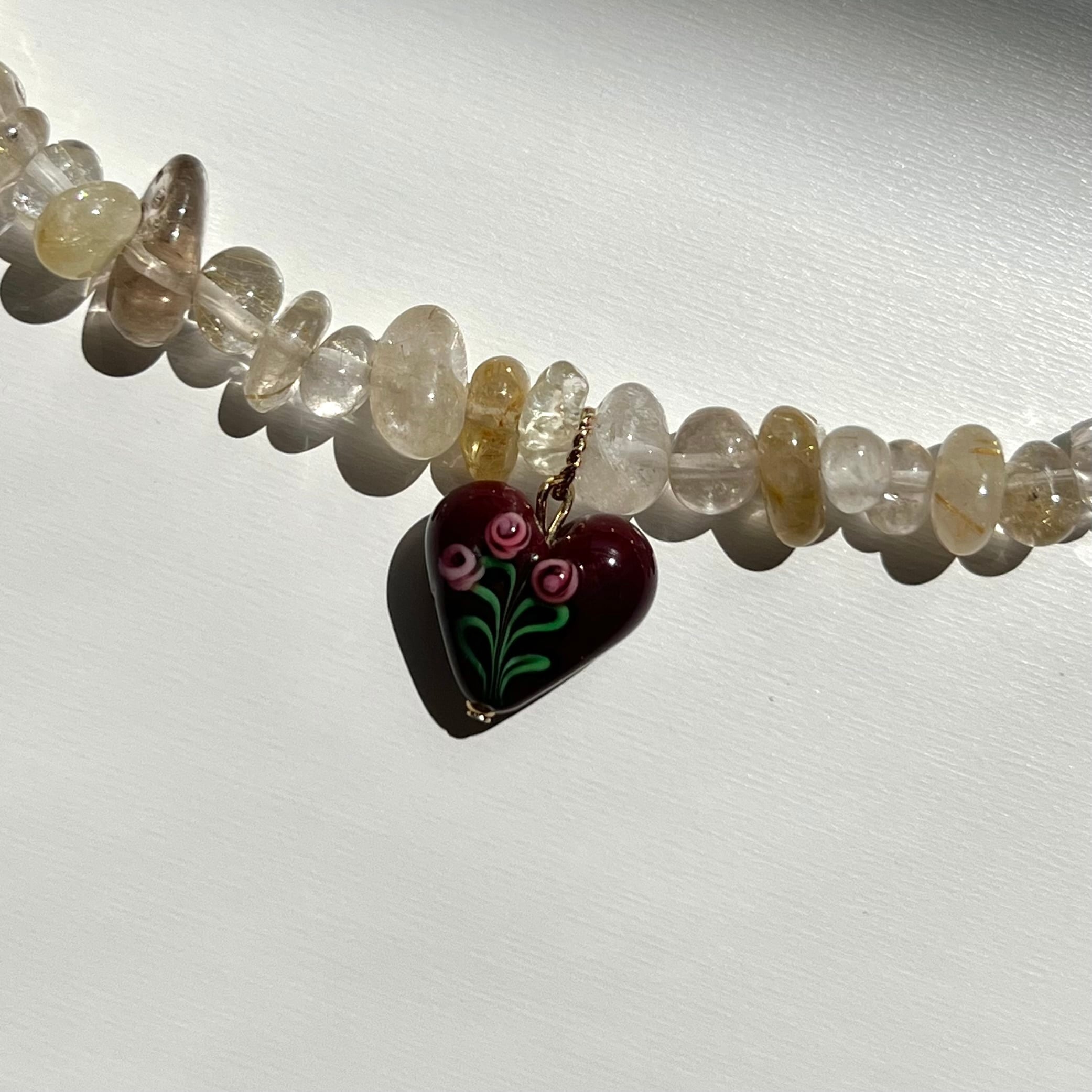 天然石とハートチャームを組み合わせたネックレスとなっております。