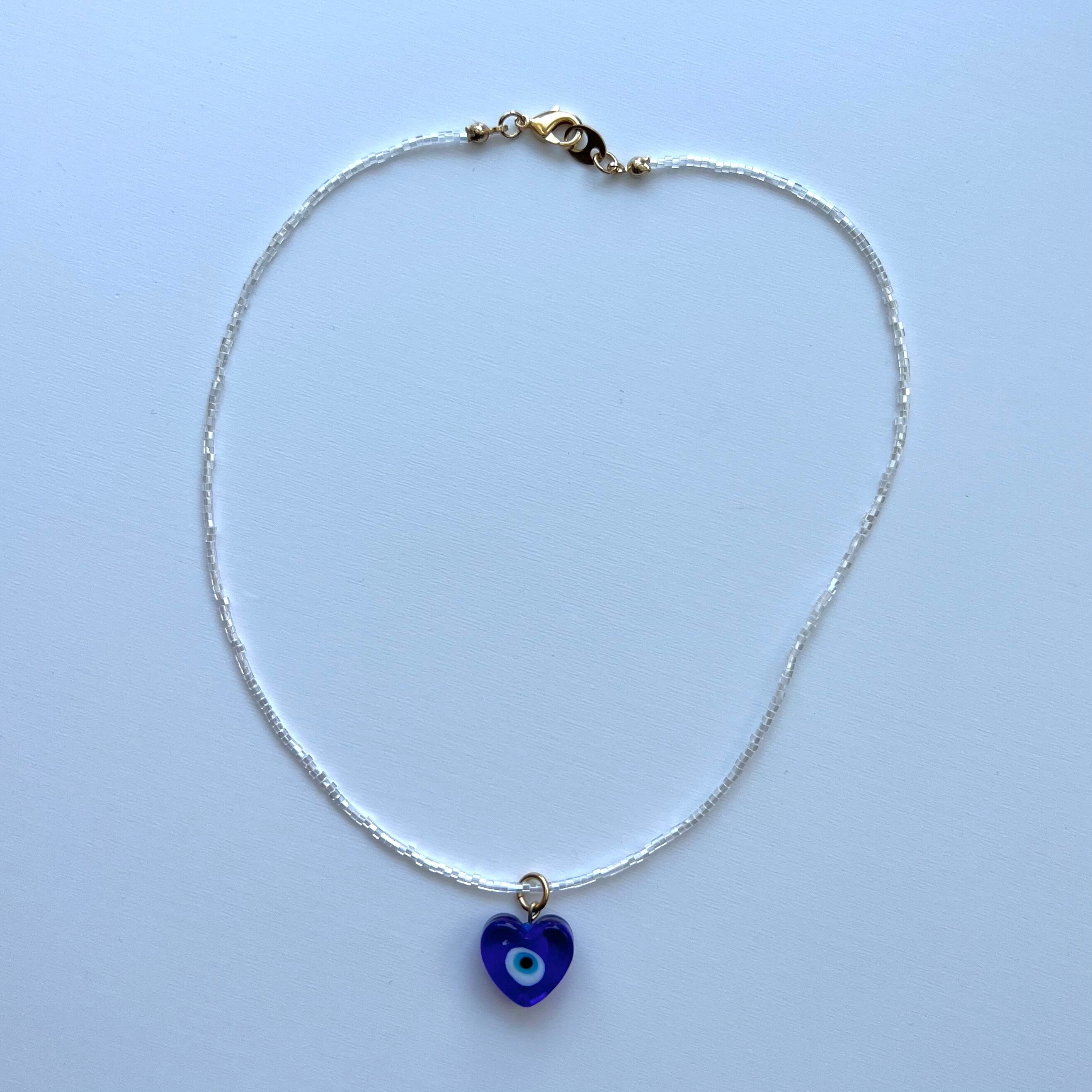 ブルーアイのガラスビーズがメインなネックレスとなっております。